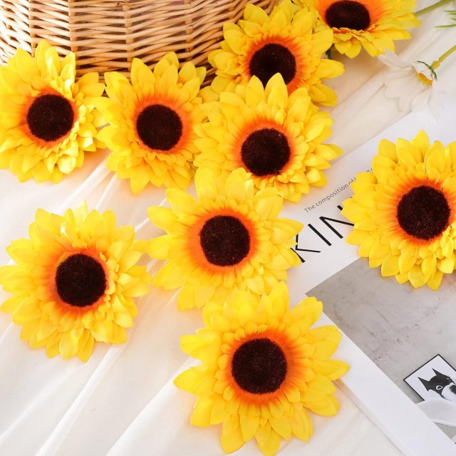 Let your creativity bloom! These artificial sunflower heads are your go-to choice for turning everyday items into radiant works of art. Add them to gift wraps, cards, cakes, or centerpieces and watch them come alive with charm and elegance. Their timeless beauty ensures your decorations stay fresh and vibrant all year round.