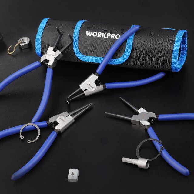 • Complete Set: Includes four precision-engineered pliers—two with straight jaws and two with 90° bent jaws—for handling snap rings in any position.