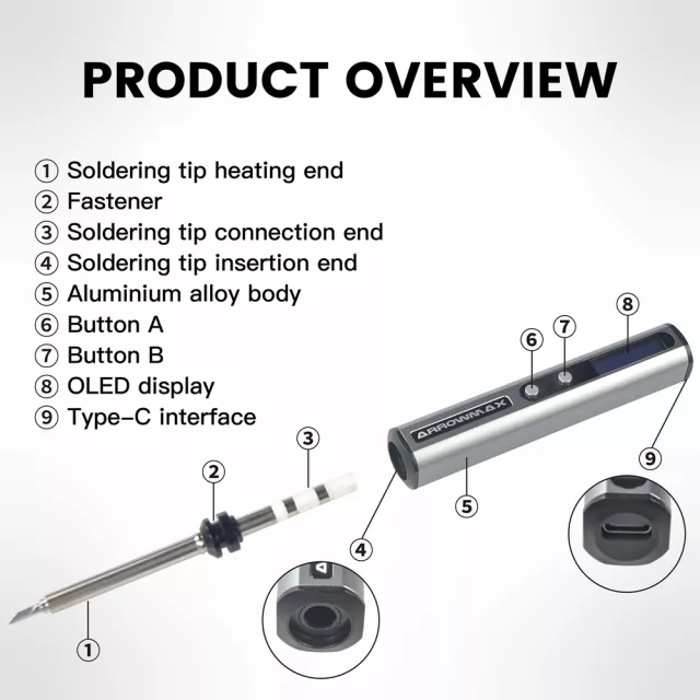 • High-Efficiency Power: Supports PD fast charging and multiple power protocols for versatile use anywhere—just plug into a compatible adapter or power bank and start soldering instantly.