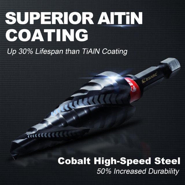 The nine-step sizes offer unparalleled convenience, especially when working on different projects that require varying hole sizes. Whether you’re looking to drill holes in thin metals or create chamfers, this step drill bit has you covered. Its AlTiN coating ensures durability under heat, while the spiral flute design reduces vibration and increases stability—delivering precise results with every drill.