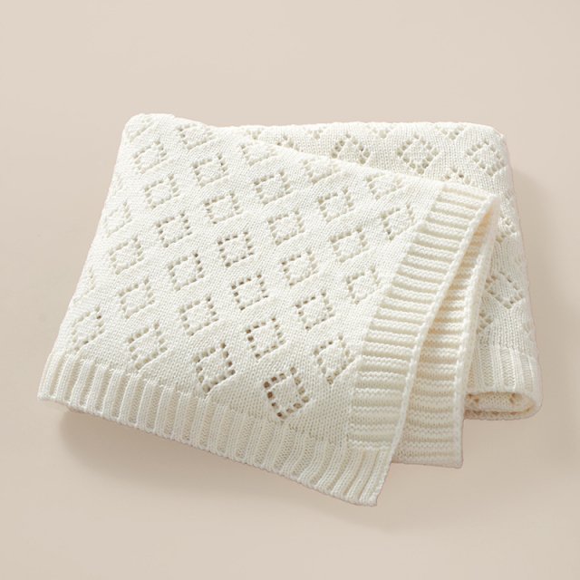 Knitted Baby Swaddle Blanket – Soft Hollow Out Quilt for Newborns