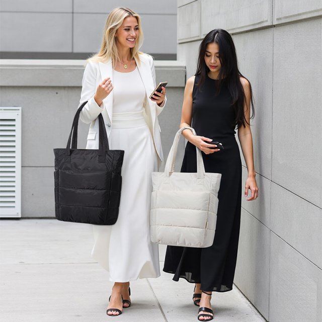 Crafted from soft, high-quality fabric, this tote is both stylish and practical. Its puffer design adds a trendy touch while also protecting your laptop and other valuables. The water-repellent finish means sudden rain showers are no problem—simply wipe it clean and carry on. Built to last, it’s the kind of bag you’ll reach for every single day.