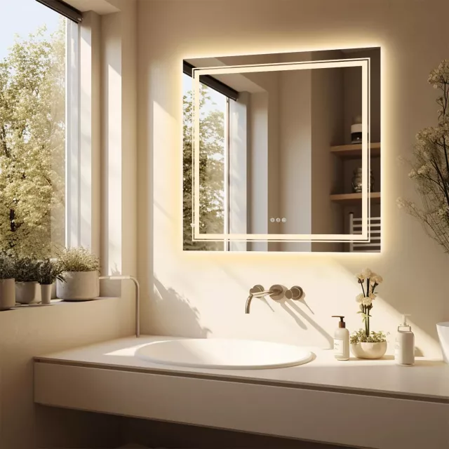 Transform your bathroom into a sleek and inviting space with this stunning LED backlit vanity mirror. Designed in a bold 36 x 36 inch square shape, it provides both style and superior functionality. The illuminated front and backlit design delivers a soft yet powerful glow, giving your bathroom a luxurious feel while ensuring you always look your best.
