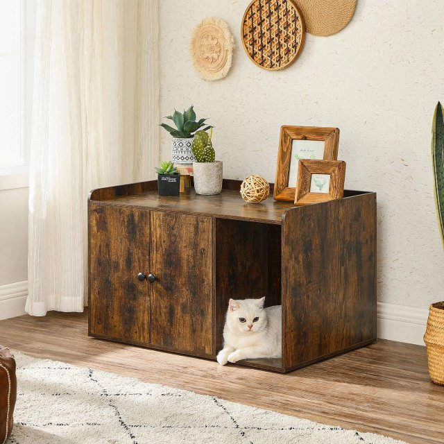 • Discreet Design: Keeps your cat’s litter box hidden, reducing odors and mess.