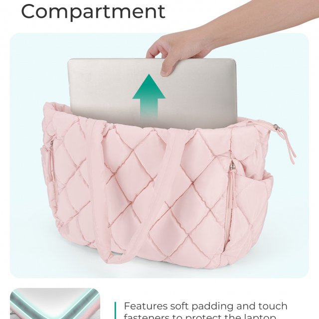 Our Quilted Puffy Tote Bag stands out due to its thoughtful combination of fashion and function. Made from lightweight and durable polyester, it weighs only 0.99 lbs, making it comfortable to carry around. The soft, water-resistant material ensures your belongings stay dry, adding to the bag’s practicality. Moreover, the stylish puffer design not only makes a statement but also offers a modern touch that complements any outfit.