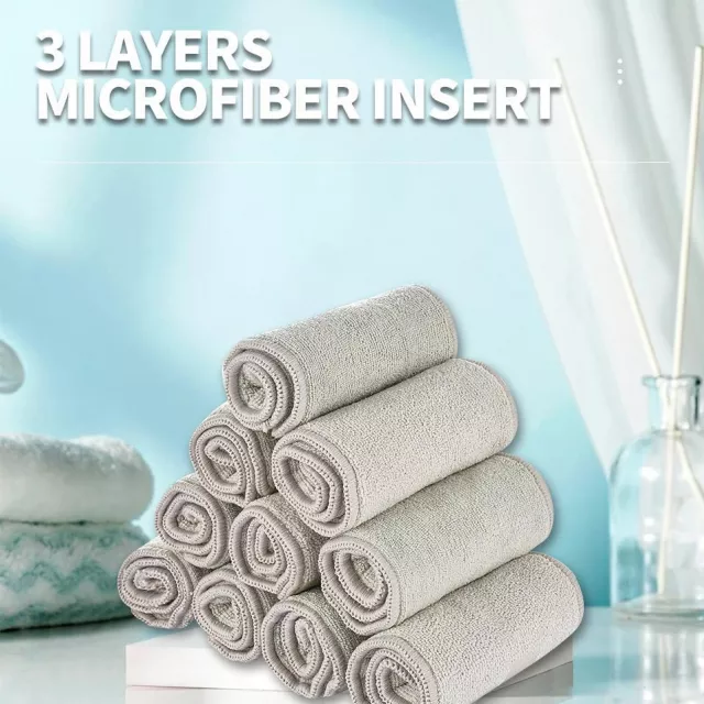 Each insert measures approximately 13.8 x 5.3 inches (35 x 13.5 cm), making it a perfect fit for most one-size pocket cloth diapers. The triple-layer microfiber design locks in wetness efficiently while remaining lightweight and easy to wash. The soft gray color gives it a clean, modern look that complements any diaper style.