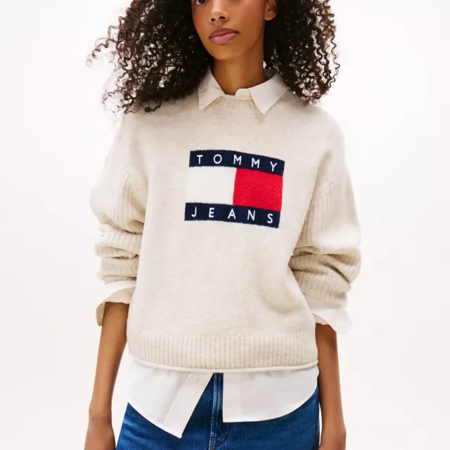 Step into effortless style with the Tommy Hilfiger Jeans Women’s White Printed Knit Sweater, designed to keep you cozy and fashionable through fall and winter. This soft, high-quality knitwear blends the brand’s timeless American spirit with modern comfort. Perfect for layering or wearing on its own, it’s a wardrobe staple that transitions seamlessly from casual weekends to elegant evenings out.