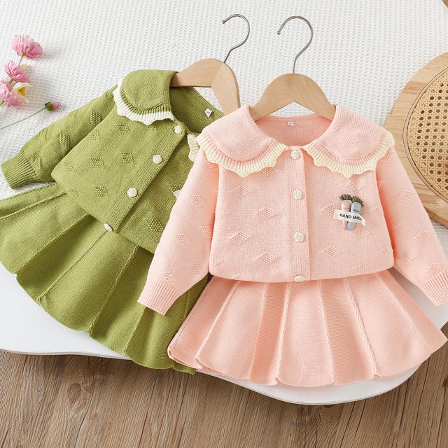 Introduce your child to the charm of classic fashion with our Autumn Kids Knit Set, featuring a delightful cardigan and skirt designed for ages 9 months to 5 years. This matching outfit exudes a sweet, nostalgic vibe, highlighted by a retro doll collar that adds a touch of elegance. Whether for family photos, parties, or everyday wear, this outfit is perfect for creating memorable moments while keeping your little one comfortable and stylish.