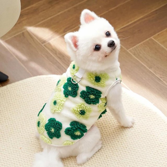 Unlike ordinary pet clothes, this vest combines double-layer plush warmth with a fashionable flower design. It’s not only functional but also a statement piece that makes your pet look adorable and feel loved. With its lightweight yet warm build, it ensures your pet stays cozy without feeling weighed down. The thoughtful design ensures a snug fit without restricting movement, making it practical for active pets.
